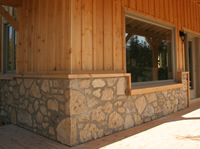 - house exterior is cedar & natural stone