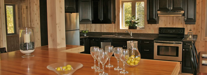 - Kitchen island made with local stone & tongue & groove